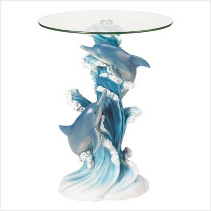 - Enhance your decor with a statuary table of incomparable artistry! Lovingly sculpted column base perfectly captures a dolphin pair's light-hearted joy and exuberant grace as they play amongst the foaming waves.